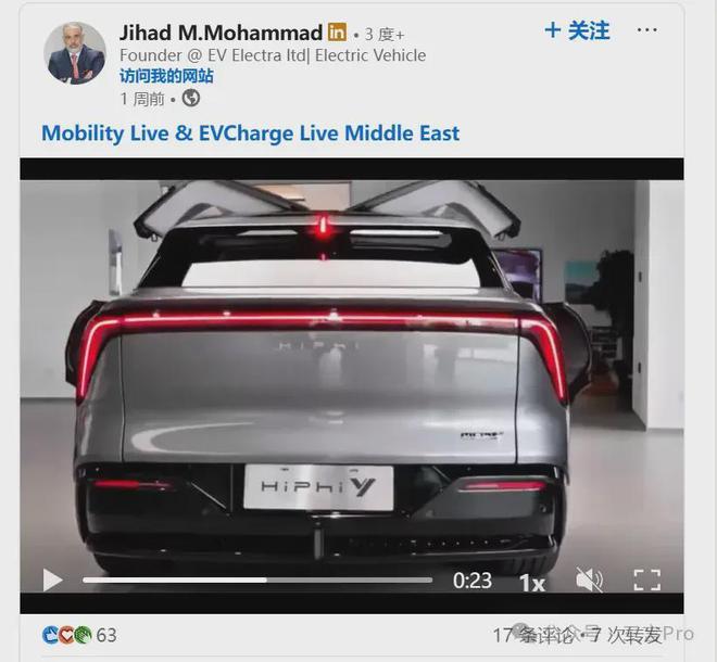 他还宣布将在6月下旬参加车展,而配图是高合汽车。还发了高合汽车的视频。