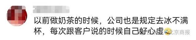 有网友评论表示,“凭什么奶茶不加冰就默认不满杯啊?”还有网友称,“怪不得我说点了一次,喝得那么快原来是不够?”