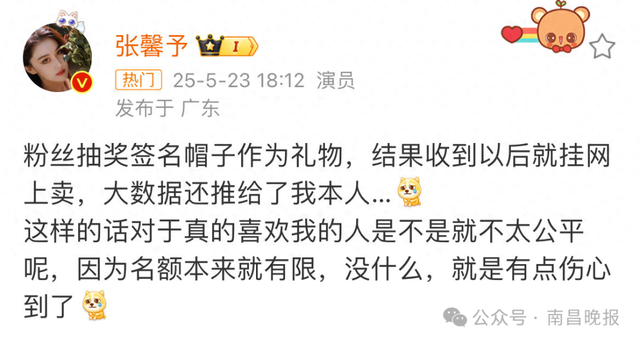 送粉丝的签名帽子被挂网上转卖!张馨予发文:有点伤心……