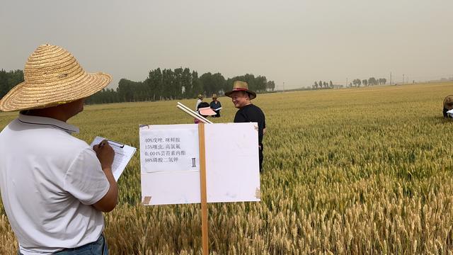 记者在现场看到,专家们头顶烈日,分工协作,有的负责普查,有的认真记录。麦田里设置了清水对照、空白对照、40%戊唑·咪鲜胺对照等不同区域。经过综合对照分析,开展“一喷三防”、一次性喷洒杀虫剂、杀菌剂和植物生长调节剂的麦田,产量最少增收10%,最大增幅达18%。