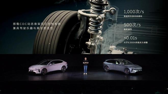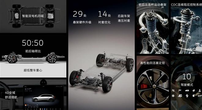 底盘方面,蔚来新ET5及新ET5T进行了29项悬架升级,标配前后五连杆悬架,并全系标配CDC动态悬架阻尼系统,500次/秒调节速度,可以实现更加出色的动态调节。