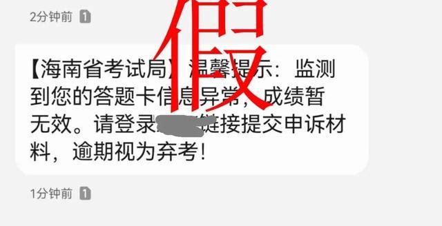海南省考试局郑重提醒:此类短信均为诈骗!