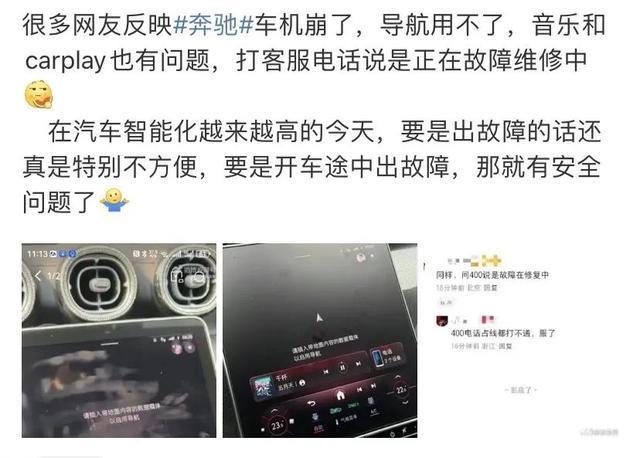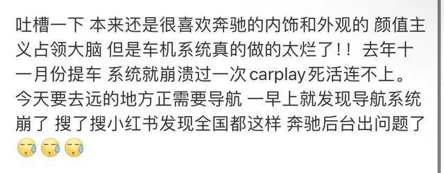 有车主表示,自己收到了奔驰的短信通知,“由于Mercedes-me后台临时出现故障,导致导航,CARPLAY等多个功能出现无法使用,或类似导航无法显示或没有导航图标。我们奔驰厂家正在加急修复,给您带来不便,敬请谅解!预计今天中午可以恢复使用。”
