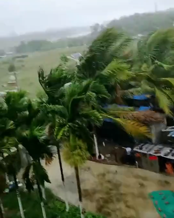 台风逼近海南岛,今早乐东风雨已开始增强。图源:中国天气