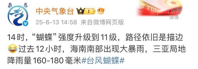 今天14时,“蝴蝶”强度升级到11级。