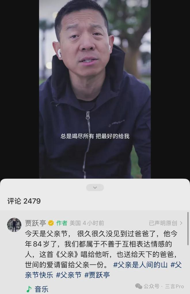 贾跃亭称已很多年没见到爸爸,继《野子》后再献唱《父亲》