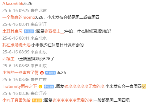 6月16日报道 今日早间,雷军借微博平台开始了小米YU7的预热造势:大家非常期待的小米YU7将于6月底发布,还有很多重磅新品同场发布,比如搭载玄戒O1芯片的第二款平板:小米平板7S Pro。除了价格,大家也在评论区猜测新品发布的具体时间,看来下周的后半程,车圈又该热闹起来了。
