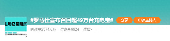 6月17日,#罗马仕宣布召回超49万台充电宝#冲上热搜。