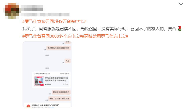 罗马仕宣布召回49万台充电宝!网友:具体咋召回?