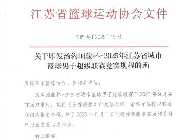 近日,江苏省篮球运动协会正式发布《2025年江苏省城市篮球男子超级联赛竞赛规程》,宣告江苏篮球的盛宴将于2025年9月擂响战鼓,组队报名工作现在开始!