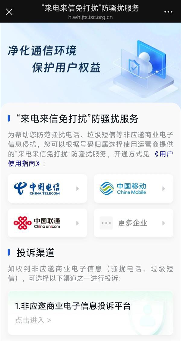 2024年下半年开始,以"来电来信免打扰"作为服务品牌名称全面加速推广,实现电话与短信双重防护。