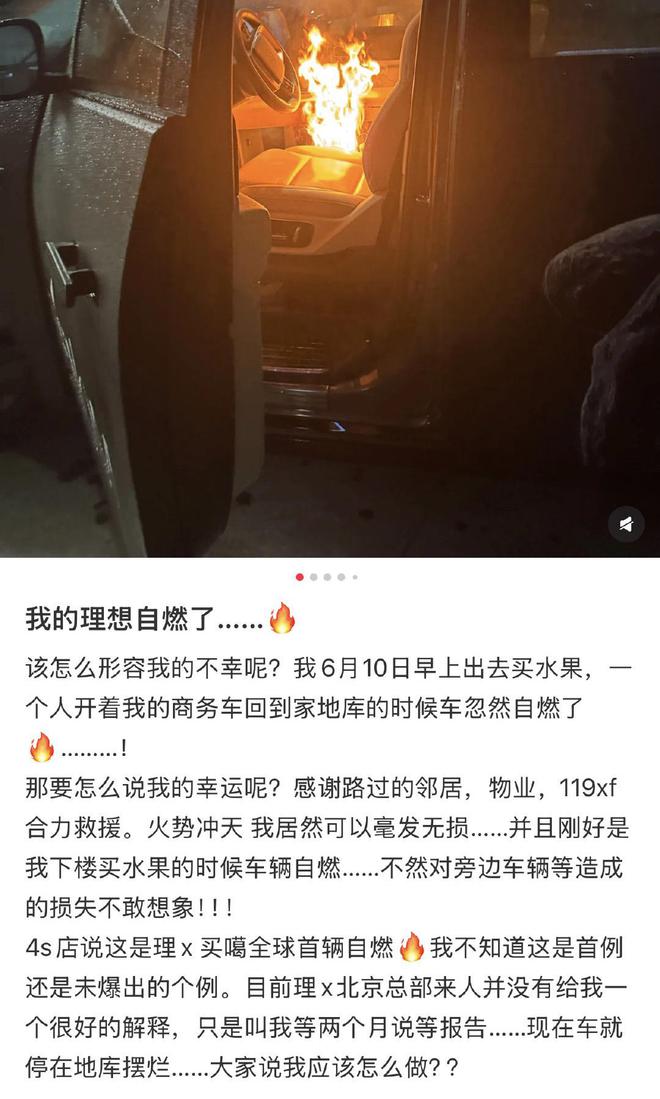 近日,一位理想车主在社交平台发文控诉其MEGA于地库内发生车内起火事件,“一个人开着我的商务车回到家地库的时候车忽然自燃了”。