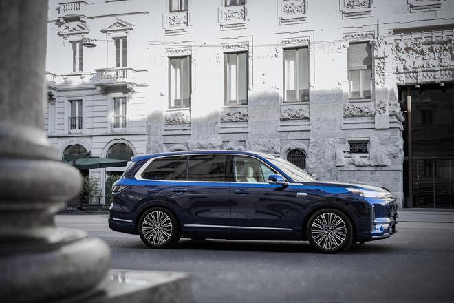 吉利银河M9的造型设计由中欧团队深度跨国合作打造,巧妙将中国设计和全球审美相融合。呈现出端正、大气的整车姿态,新车“以大为美”,1:1.2的窗身比,不仅和市面上过于运动的车身比例形成强烈对比,更照顾了车内视野。