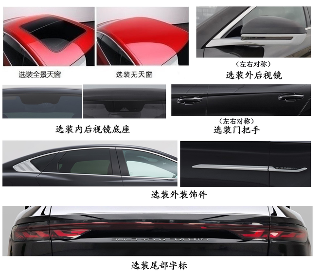 选装配置方面,新款比亚迪e9提供全景天窗、无天窗、外后视镜、内后视镜底座、门把手、外装饰件、尾部字标等多种选装项,满足不同用户的个性化需求。