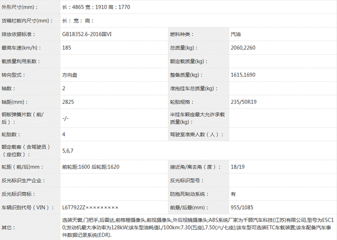 动力方面,此次新车申报的是1.5T发动机,最大输出功率133kW,最高车速185km/h。
