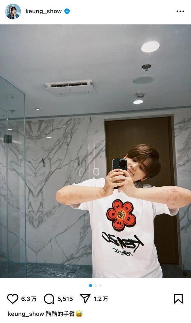 姜涛还在个人社交平台发布一组最新照片。其中一张照片中,他双手握住手机对镜自拍,脸上略带微笑,神情放松,不过双臂上细密的划痕非常醒目。粉丝对此心痛不已,纷纷留言:“过去了,平安就好”“照顾好自己”“幸好没有大碍”“皮外伤,很快就会好!”……