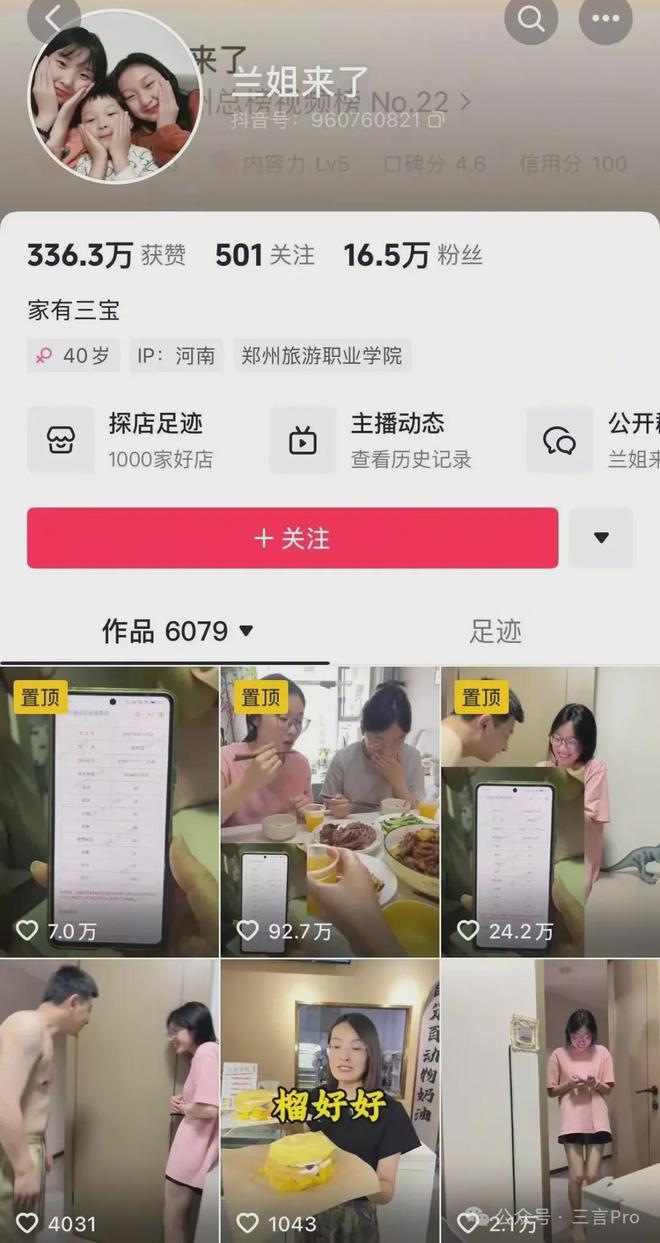 网友发现母亲账号“兰姐来了”有16万粉丝,平时主要就是发布一些带货、推荐视频。不过发布查分视频前,视频总体的播放数据并不高,通常只有几十点赞。