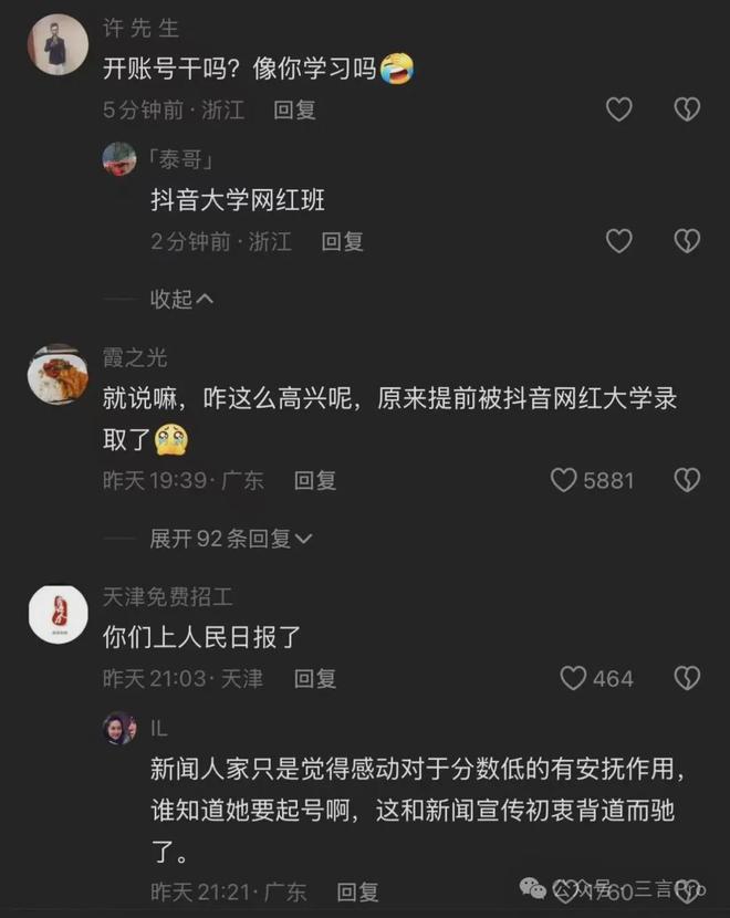 不过从另一个方面去看,低分庆祝是对高分内卷的一种释放,但如果过分美化低分或淡化努力,是不是又容易走向另一个极端。