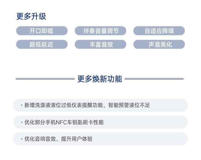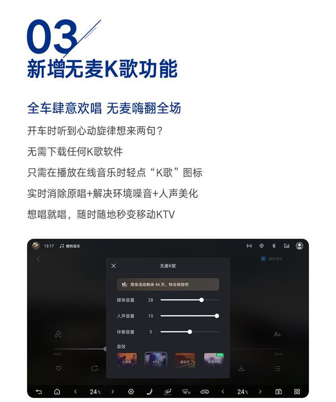 另外,此次新增的无麦K歌功能,采用帝瓦雷音响技术,用户无需外接麦克风即可实现车内K歌体验,满足多样化的车载场景需求。