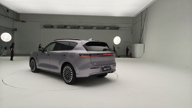 车身侧面线条流畅,前翼子板辅助驾驶摄像头饰板重新设计,D柱由悬浮式改为三角形结构,使视觉重心更符合黄金比例。尾部保留贯穿式灯组,后包围造型更为简约。车身尺寸为4915×1960×1660mm,轴距2960mm,较现款长度和宽度各增加10mm,高度提升15mm,搭配21英寸光影矩阵轮毂,强化豪华感。