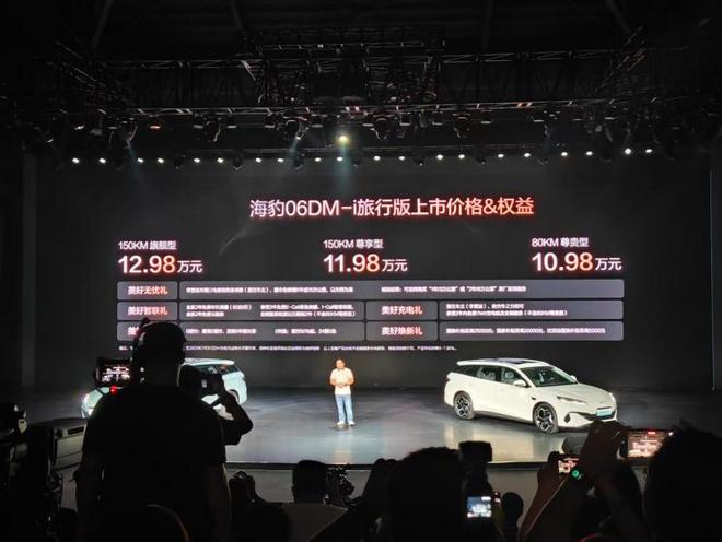 7月4日报道7月4日,比亚迪旗下首款全球超混旅行车——海豹06DM-i旅行版正式上市,新车提供80KM尊贵型、150KM尊享型、150KM旗舰型3个版本,售价10.98-12.98万元。海豹06DM-i旅行版搭载比亚迪第五代DM技术,标配“天神之眼C”智能驾驶辅助三目版(DiPilot 100),高配版车型搭载云辇-C智能阻尼车身控制系统;此外,新车全系标配冷暖冰箱,并搭载有电动尾门、15.6英寸悬浮中控屏、超大全景天窗等配置,为主流用户提供了轿车和SUV之外的全新选择。