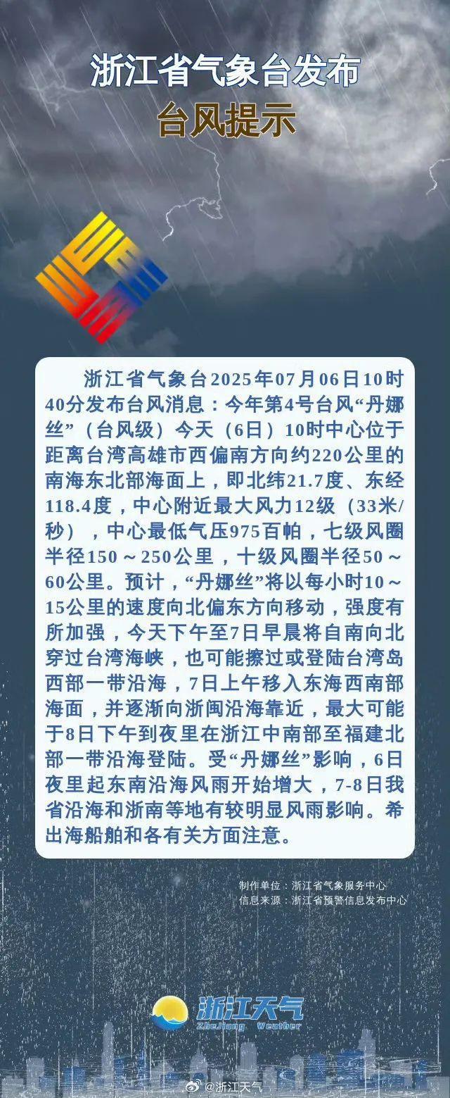 预警升级!“丹娜丝”或达强台风级!杭州人准备好:强降雨+局部暴雨+大风!