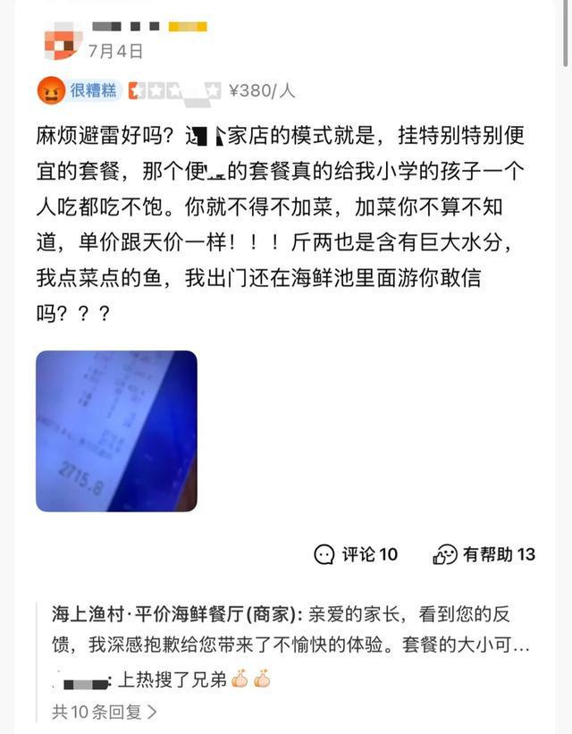 海鲜套餐团购318元,到店却变2297元,网友排队晒单:同一家!汕头官方回复:已查封,此前经常进行检查