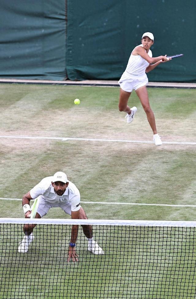 北京时间7月8日,36岁的中国“金花”张帅搭档萨尔瓦多选手阿雷瓦洛在温网混双四分之一决赛中,以7:5、7:6(7)战胜前冠军组合斯库普斯基/克劳茨克,晋级四强。