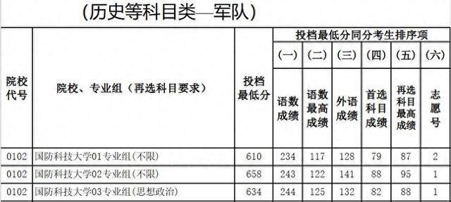 除了备受关注的这两所高校,国防科技大学的部分专业组投档线直逼清华、北大。国防科技大学历史类02专业组最低投档线达到了658分,物理类09专业组(再选科目化学)则达到了671分。