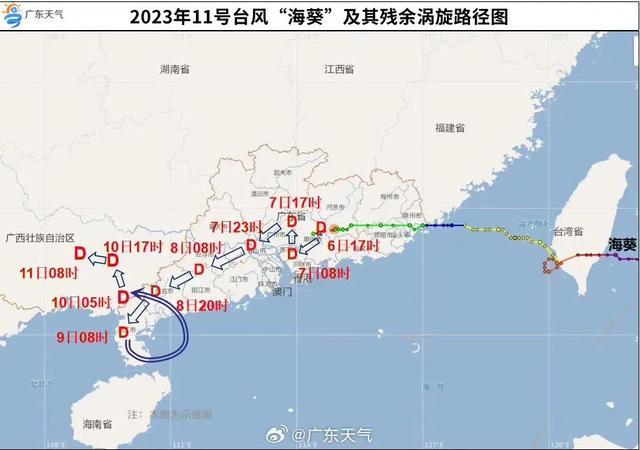 2023年,广东省气象部门发布的“海葵”残涡路径图