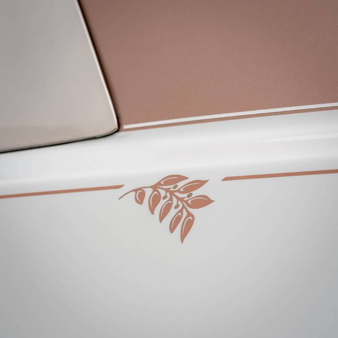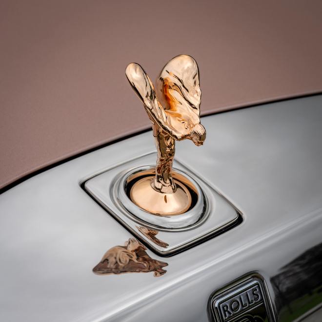 外观方面,幻影“蕾丝妙艺”采用水晶极地白+专属Crystal over Palais Nemasker Dawn双色车身,腰线以日出红色勾勒,末端点缀手绘枝叶与珍珠状“浆果”图案。前脸配备抛光帕特农神庙进气格栅,顶部镶嵌玫瑰金“欢庆女神”立像,22英寸全抛光碟式轮毂搭配北极白色饰条,强化视觉冲击力。抛光帕特农神庙进气格栅顶部冠以玫瑰金“欢庆女神”立像,同样的材质还运用于Bespoke高级定制雕刻迎宾踏板。