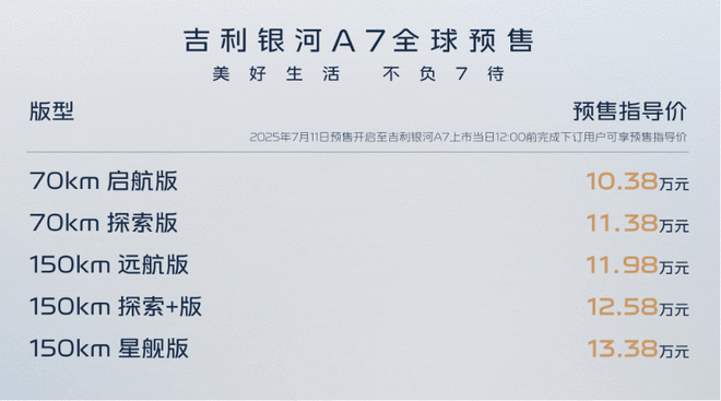 插混家轿馈电油耗2L级 吉利银河A7预售10.38万起