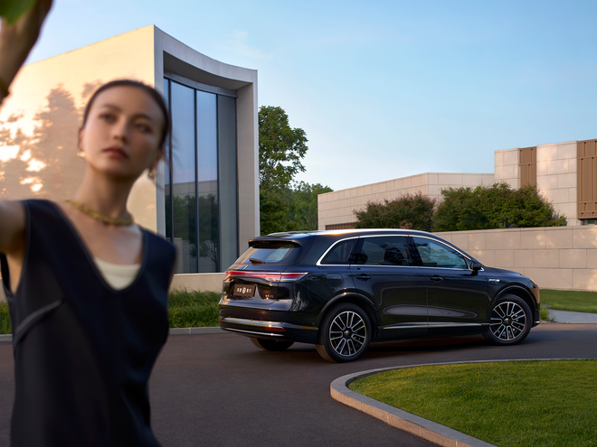 侧面采用平直车顶线条,确保后排头部空间,并未采用隐藏式门把手,而是保留传统机械结构,提升可靠性。车尾配备贯穿式尾灯组,顶部集成扰流板,整体风格简洁且富有层次感。车身尺寸尚未公布,但官方强调其“真三座”后排设计,舒适性表现突出。