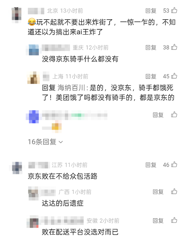 也有网友回应称:"没有京东,骑手什么都没有。"