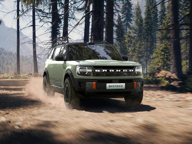 整体造型上,福特烈马新能源相比在售的燃油车型,车头部分经过了重新设计,配备了全新造型的头灯组,并且“BRONCO”标识能够点亮。发动机舱盖上还集成了贯穿式风道,搭配“烈焰橙”配色,黑色下包围搭配车身同色点缀,彰显出运动与时尚的气息。侧面采用悬浮式车顶设计,兼顾越野实用性。