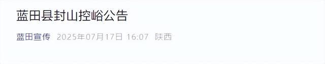 目前,蓝田县已发布暴雨红色预警,为有效应对强降雨天气,确保人民群众生命财产安全,现就有关封山控峪事项公告如下: