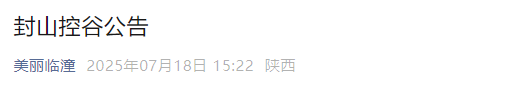 一、自2025年7月18日16时起至本轮降雨结束,对临潼区骊山山区所有进山道路、山口实行封闭管理(只出不进),除公务、救护、抢险等必要人员外,其他无关人员请勿进入山区。