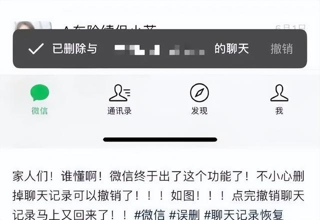 近日,有多名网友发帖称,发现微信聊天记录误删后可以撤销操作了。