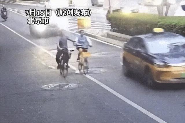 据孟世祥回忆,事发时间是6月25日晚7时40分许,他正在送单途中,行至莲花池东路与白云路交叉口西侧时,看到前方非机动车道上,一名骑共享单车的女孩试图从左侧超越一名骑自行车的男子,不料该男子竟故意“较劲”,多次将女孩往机动车道上挤。