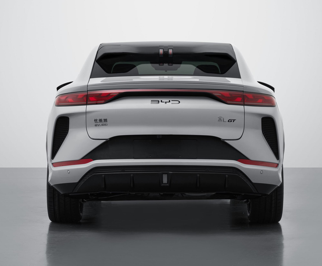 尾部设计采用扁平化后包围,降低视觉重心,黑色扰流板与贯穿式尾灯形成呼应,电动升降尾翼与固定式扰流板双配置可选。车身尺寸与宋L EV保持一致,长宽高为4840/1950/1560mm,轴距2930mm。